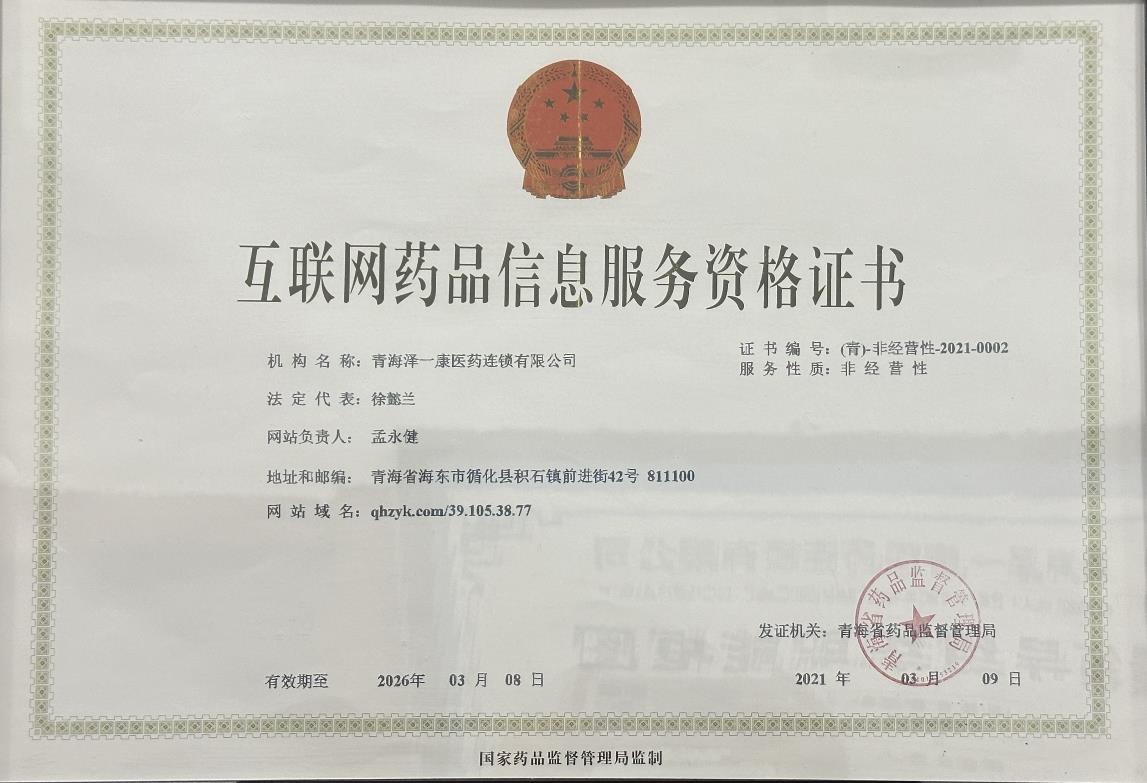 青海泽一康医药连锁有限公司于2018年9月3日登记注册,于2020年1月7日取得《药品经营许可证》,公司自开办以来,严格遵守《中华人民共和国药品管理法》、《药品经营质量管理规范》,制定“质量第一、依法经营、诚信经营、顾客至上”的企业质量管理方针,配备相应的药学技术人员,制定严格的企业质量管理体系,全面提高员工综合素质,严格对照GSP现场检查指导原则,不断自查、整改、完善,确保企业经营行为的规范性、合法性,确保所经营药品质量的安全有效,确保质量管理体系的有效运行及持续改进。。。